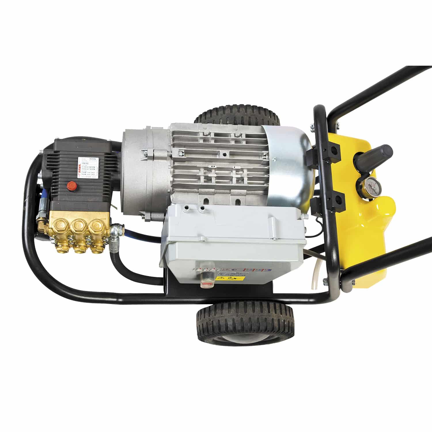 • Bomba profesional de alto rendimiento con tres pistones cerámicos, sistema biela/cigüeñal y cabezal de latón.